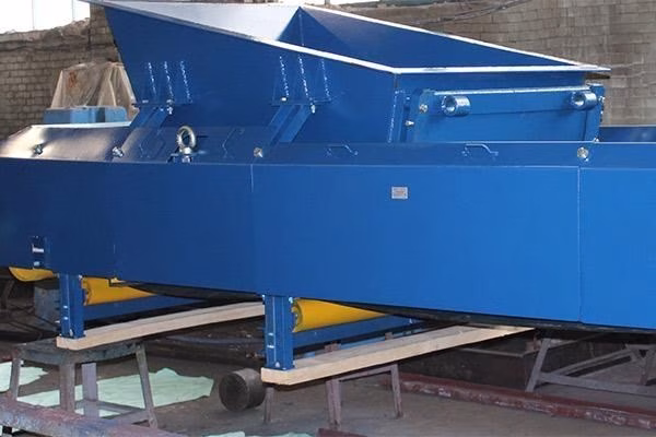 Очистка ленты осуществляется скребком для очистки ленты. Если транспортируемый продукт пылевидный, питатель может быть оборудован укрытиями.