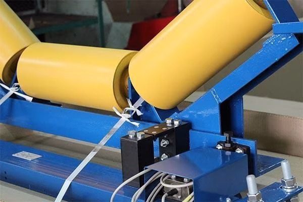 Весы конвейерные ВК-М-2-1200-1 состоят из грузоприемного устройства ГПУ, имеющего одну или две весовые роликоопоры, со встроенными весовыми датчиками, индикатором и датчиком скорости ДКС. Каждая весовая роликоопора опирается на два или четыре весовых датчика. Весовые датчики устанавливаются на опорную раму. Грузоприемное устройство ГПУ монтируется на конвейерный став. Принцип действия весов основан на преобразовании деформаций упругих элементов весовых датчиков, возникающих под действием силы тяжести взвешиваемого груза, в электрический сигнал, изменяющийся пропорционально массе груза, а также измерении скорости движения конвейерной ленты с помощью датчика скорости ДКС.