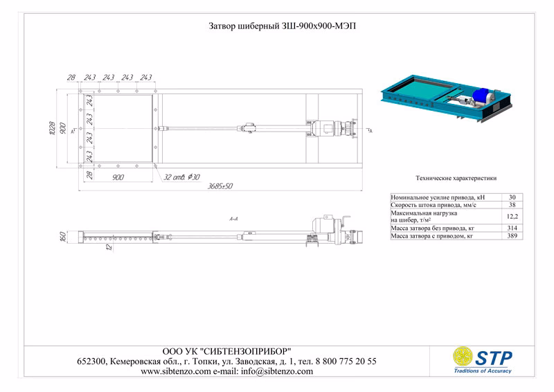 Затвор шиберный 3Ш-900х900-МЭП выполняет функцию регулирования либо полной блокировки потока веществ. Отличительной особенностью устройства является использование металлического ножа (пластины) в качестве запорного элемента.